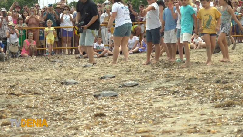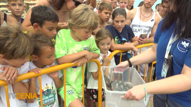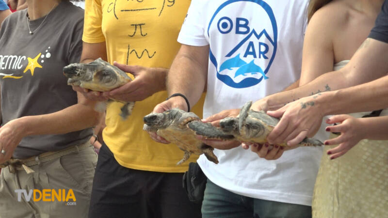 Diez tortugas Bobas que nacieron en Dénia han sido criadas y cuidadas por el Oceanográfico de Valencia, este domingo y para celebrar el día de los Océanos, todas las partes implicadas han realizado una suelta de estas tortugas delante de la atenta mirada de muchas personas en la playa del Raset de Dénia