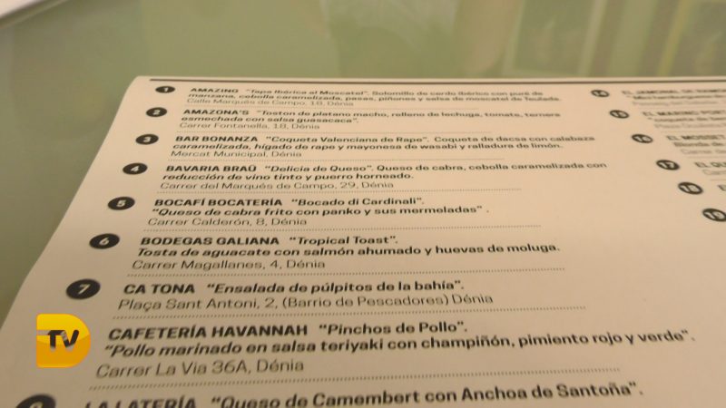 Estos establecimientos son los que participan en esta iniciativa: Amazing, Amazona’s, Bar Bonanza, Bavaria Bräu, Bocafí Bocatería, Bodegas Galiana, Ca Tona, Cafetería Havannah, La Latería, Divino, El baret de Robert, El Comercio, El Convent, El Jamonal de Ramonet, El Marino Port, El Mosset, El Quinto Pino, El Rincón de Montava, El Senyoret, Entre Aromas, L’hotelet de La Raconà, Kantina Japonesa by Meshico (Els Magazinos), La Cuarentena, La Glorieta-La cuina de Toni, La Mar de Chula, La Taverna del Mirall, La Traviesa, La Xerna del Mar, Mena Restaurant, Mr. Fisher, Smile, Tapes del Port, Tasca Eulalia, Tasca La Carme, Tasca Ramonet, Taverna Els Cosins, Tempura Bar & Grill, Terra de Sabor, Txoko Bar y Movida Dénia.