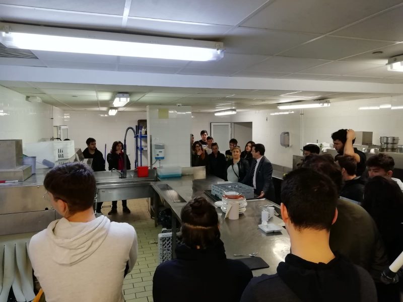 En la última jornada de estancia en Dénia, los alumnos conocieron por dentro del funcionamiento de un gran hotel de cinco estrellas. De la mano de Jerome Gateau, director del Marriot La Sella Golf Resort &Spa, el grupo recorrió las instalaciones del área de restauración: cocinas, restaurantes, salones y almacenes. Recibieron explicaciones detalladas de la organización del trabajo cotidiano del hotel junto con el chef responsable de la oferta culinaria y el director de compras de alimentación. Los alumnos podían comprobar así el volumen de trabajo, la minuciosa logística de las cocinas y el protocolo de actuación en la sala en la hora de los servicios diarios de comidas.