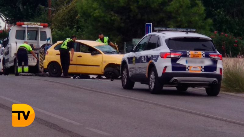 Hasta el lugar de los hechos de han trasladado Policía Local de Dénia, una ambulancia para atender a los accidentados y la grúa para retirar el turismo.