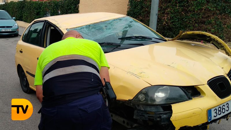 Hace escasos minutos ha habido un aparatoso accidente en la carretera de Les Marines, frente a la Urbanización Estrella en la calle Besuc. Tal y como se ve en las imágenes un coche ha volcado. El conductor del vehículo, una mujer, y el copiloto, un varón, habrían salido ilesos del golpe. Parece ser que ha sido un despiste y, afortunadamente, solo ha habido daños materiales.