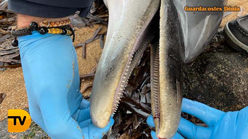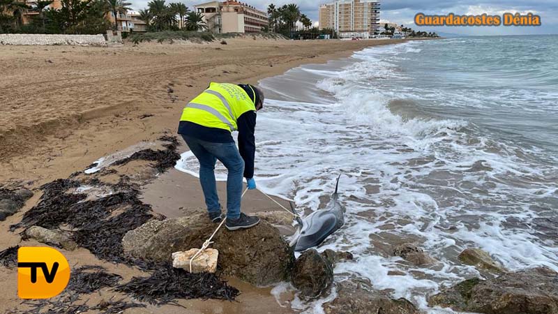 El aviso llegaba al servicio de Guardacostas Dénia a las 10 horas, por el servicio de limpieza de playas, aunque ya era tarde, puesto que el mamífero ya estaba muerto.