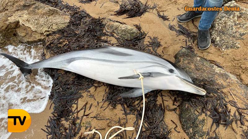 Durante la mañana de este jueves ha aparecido un delfín listado muerto en las playas de Dénia, concretamente en la playa en la que se ubica el Hotel Los Ángeles.