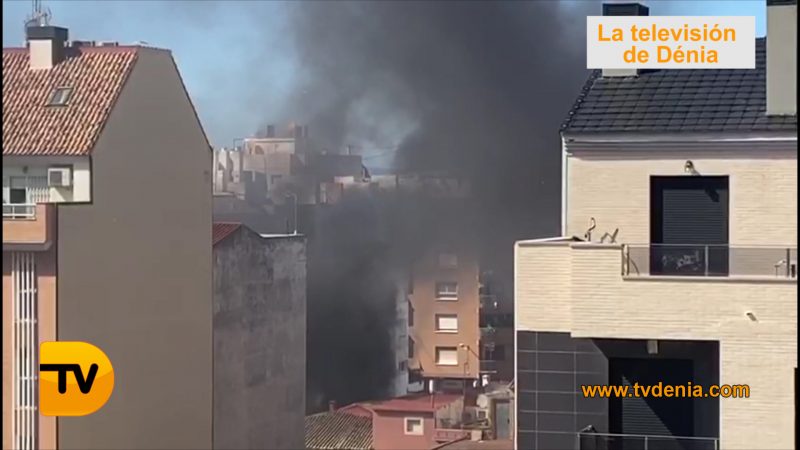 La columna de humo negra generada por el incendio era apreciable desde prácticamente toda Dénia.