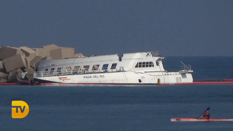 Baleària avanza en los trabajos de retirada de los restos del buque Pinar del Río de la escollera norte del puerto de Dénia. Las empresas especializadas Ardentia Marine y Varadero Vinaròs, SL, se están encargando de seccionar el buque en superficie y de retirar las piezas mediante una grúa de 250 toneladas. Todas estas secciones son trasladadas a la planta de reciclaje autorizada, que gestiona la compañía Varadero Vinaròs, SL.