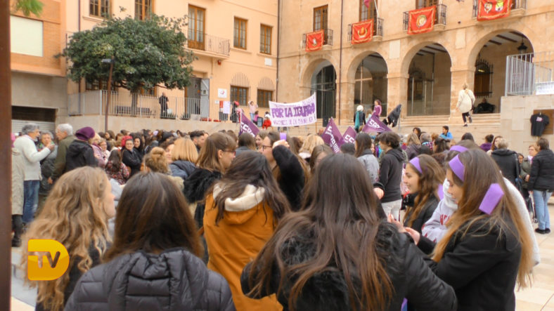 Cerca de 600 mujeres se han dado cita en la concentración del 8M, convocada por el IES número 3 de Dénia. Concentración que empezó a las 10:00 de la mañana y que, durante dos horas, se ha reivindicado los derechos de igualdad, con lecturas de poesías, música, bailes y parlamentos.