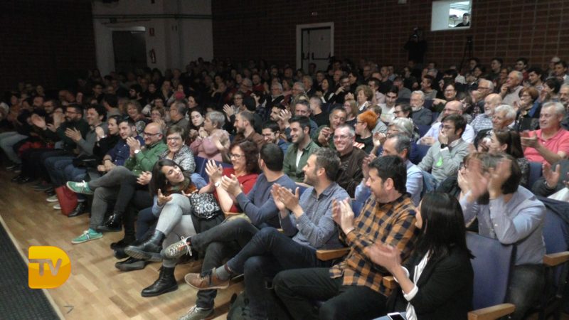 Minuts després, la sala li donava una calorosa acollida a Joan Baldoví, qui va començar parlant de la banalització de la política que està fent la dreta. Una política que, segons el candidat i actual diputat de Compromís al Congrés, apel·la “als baixos instints i a l’emotivitat” i que no mira per les vertaderes necessitats de la gent. Afegia doncs que, el 28A “cal votar amb el cor i amb el cap”, ja que “ens juguem un projecte de vida digne i uns drets fonamentals”.
