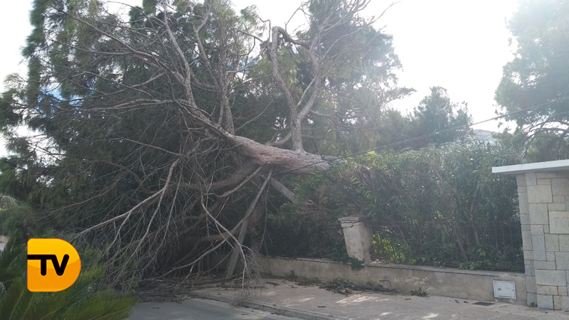 Cortada la carretera de Dénia en dirección Les Rotes por la caída de un pino en Dénia