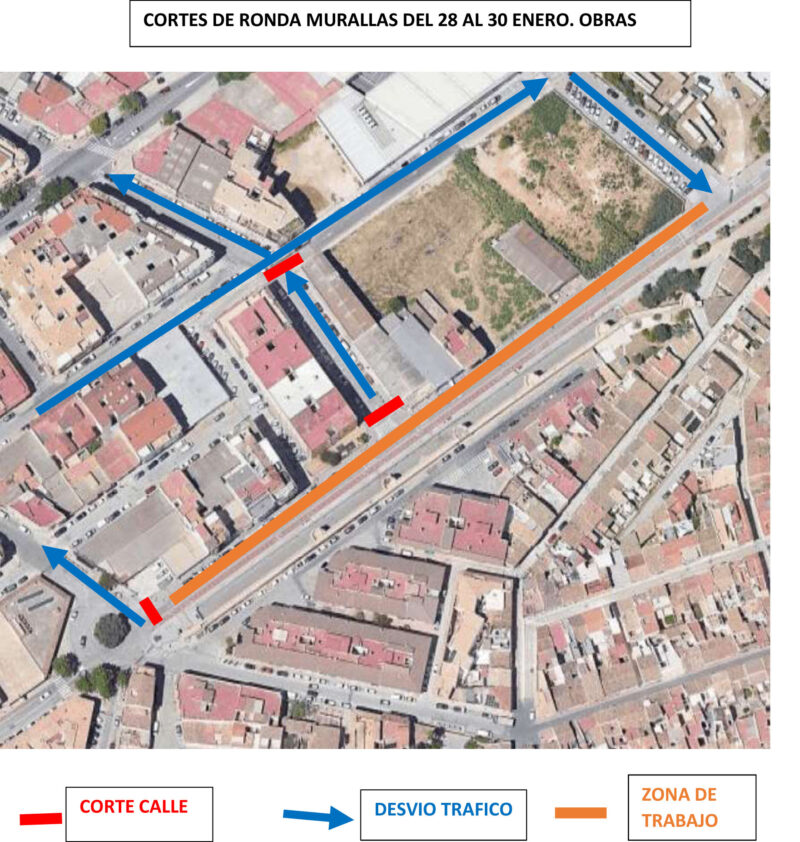 Del 28 al 30 de enero, de 8:00 a 15:00 horas, permanecerá cortada la Ronda de las Murallas en el tramo comprendido entre la rotonda con la calle Miraflor y la calle Mirarrosa.