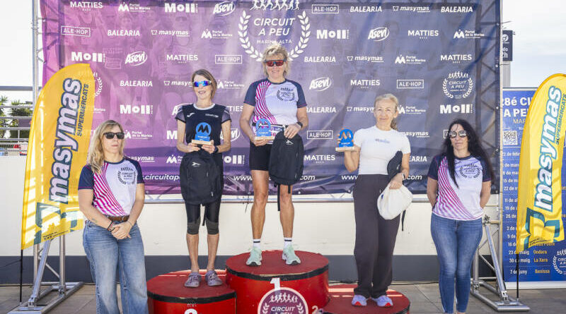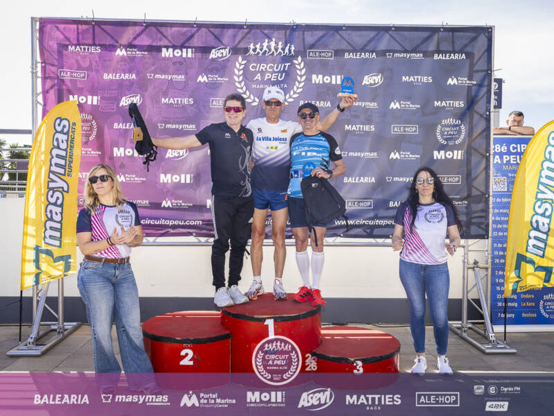 Los vencedores de la categoría Veteranos F, en la III Volta a Peu Portal de La Marina, se llevaron doble premio al corresponderles un lote productos Asevi, en ambas categorías, la femenina y en la masculina, al igual que tres finisher de los 955 finisher, que cruzaron la línea de Meta.