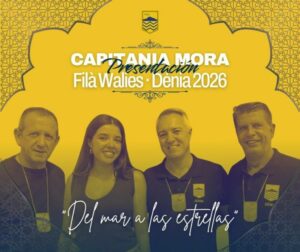 La Filà Walies celebrará el sábado 8 de noviembre, a las 13:00 horas, la comida-presentación de su 10.ª Capitanía Mora, que llevará por lema “Del mar a las estrellas”, en la Sala Multiespai L’Androna, situada en la Estación Marítima de Baleària Port (Dénia).