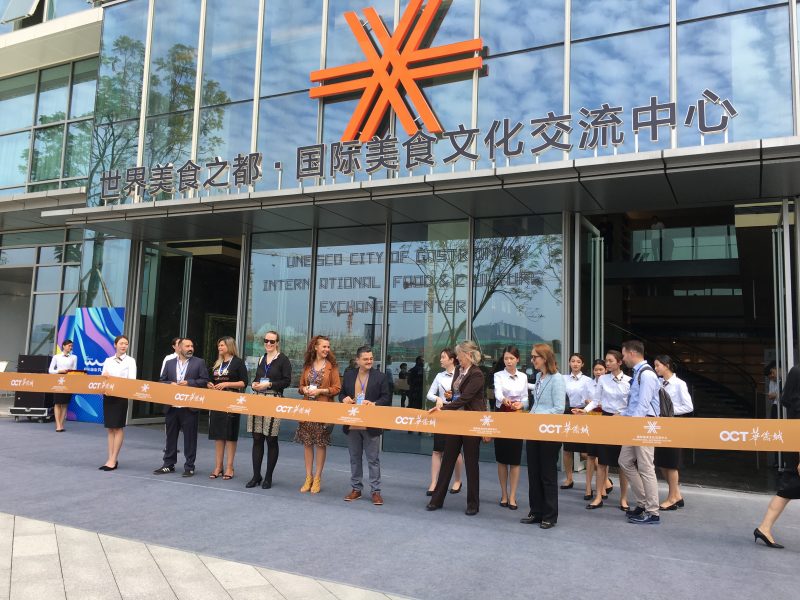 El parque OCT Shundé Harbour contaba hasta ahora en su amplia zona gastronómica con un área central dedicada a establecimientos de hostelería, un centro comercial convencional y un gran hotel. El pasado fin de semana se inauguró el Centro Internacional de Cultura y Gastronomía, un moderno espacio que dispone de un Museo de Cocina Local con exposiciones multimedia, aulas para demostraciones culinarias y espacios para conocer proyectos gastronómicos internacionales. Cuenta, además, con una sala dedicada exclusivamente a las Ciudades Creativas de la Gastronomía de la red UNESCO, donde se expone estos días material con información sobre los proyectos que vienen desarrollando y folletos y publicaciones de promoción turística de las ciudades. Cada ciudad tiene además un panel informativo permanente. Las autoridades chinas han puesto el pabellón recién inaugurado a disposición de la red UNESCO.