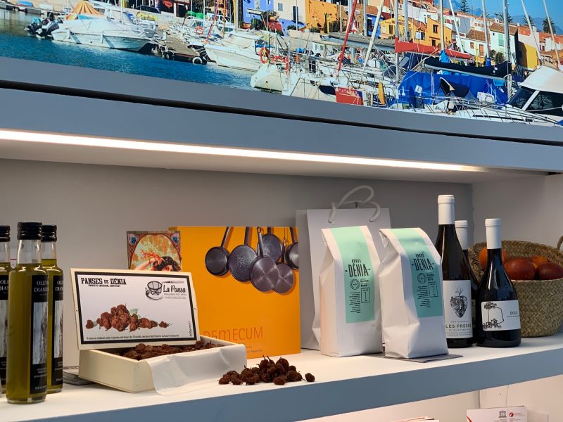 Pero también se han promocionado otros productos de la zona, con la presencia de sus productores, como los vinos de moscatel seco y dulce de la Bodega Les Freses, cocas tradicionales de tomacat, guisantes, anchoa y cebolla de Cocas Cidoncha, coca María y de almendra de la cafetería-pastelería Canela, arroces “bomba” y “bombón” de Arròs Dénia, el recién estrenado aceite “Oleum Dianium” de Oligarum y las pasas de Jesús Pobre y de la empresa Melicatessen.