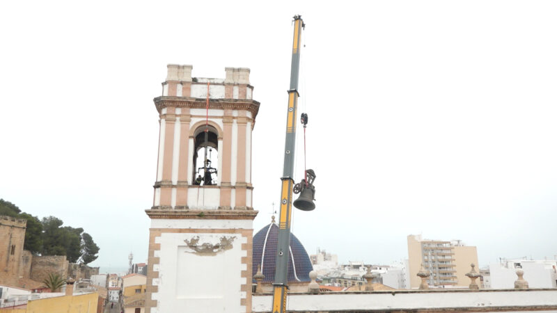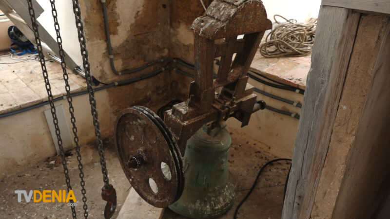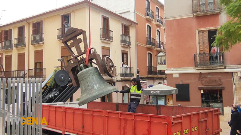 Con las cinco campanas ya en tierra, el campanario permanece ahora en silencio, roto únicamente por el sonido de la campana del reloj del Ayuntamiento, que seguirá marcando el paso del tiempo en el corazón de Dénia hasta que el conjunto vuelva a ocupar su lugar en lo alto del templo.