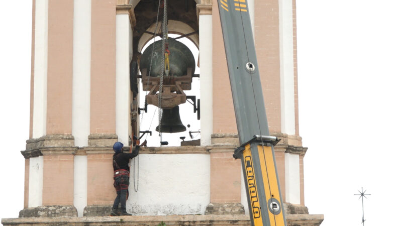Como novedad, las campanas se instalarán sobre una nueva estructura de madera de iroko, un material resistente y duradero que garantizará mayor seguridad y estabilidad en el futuro.