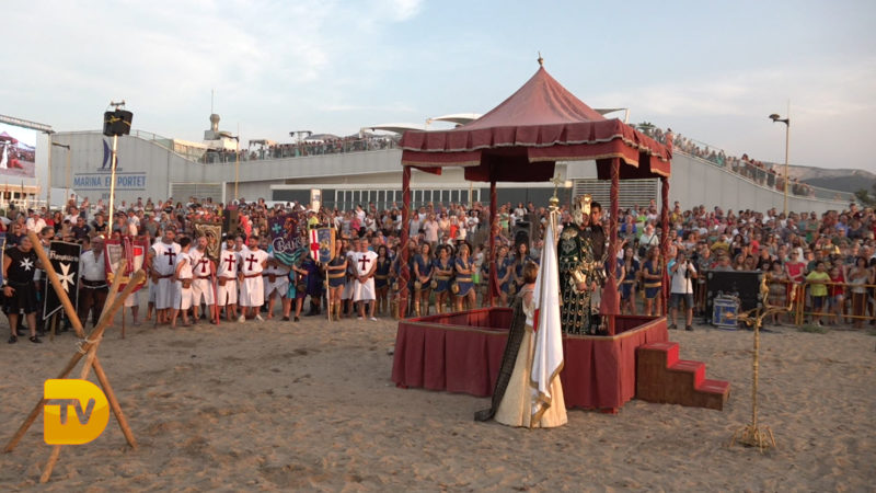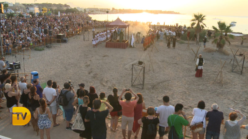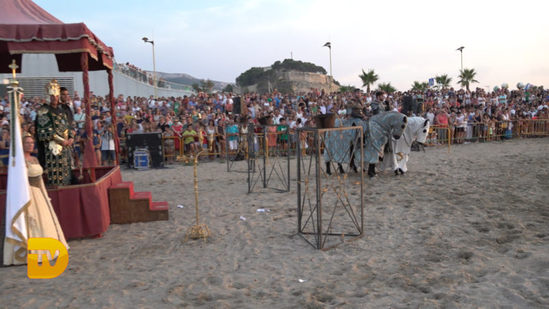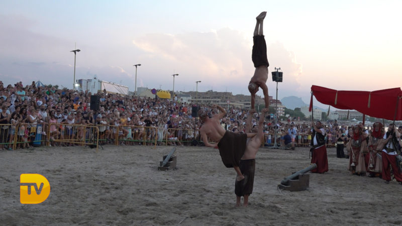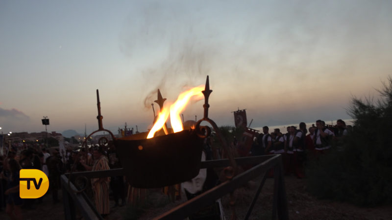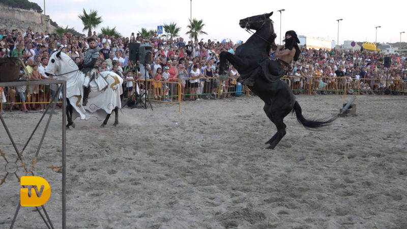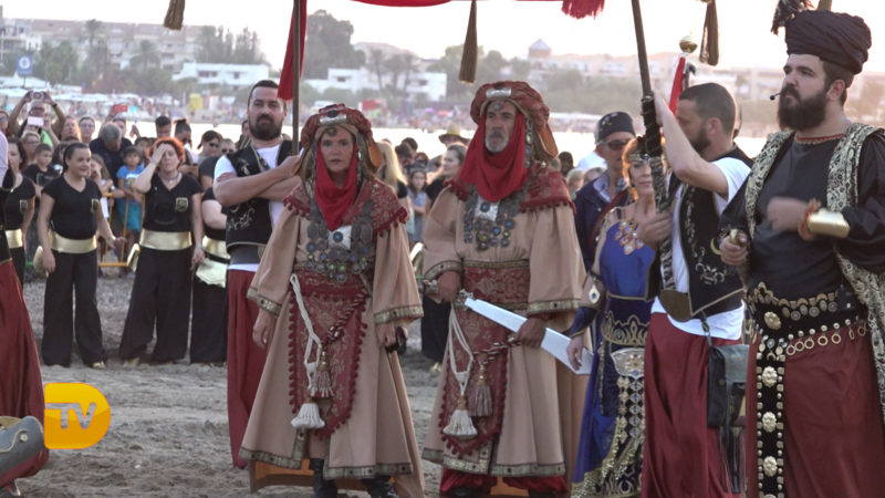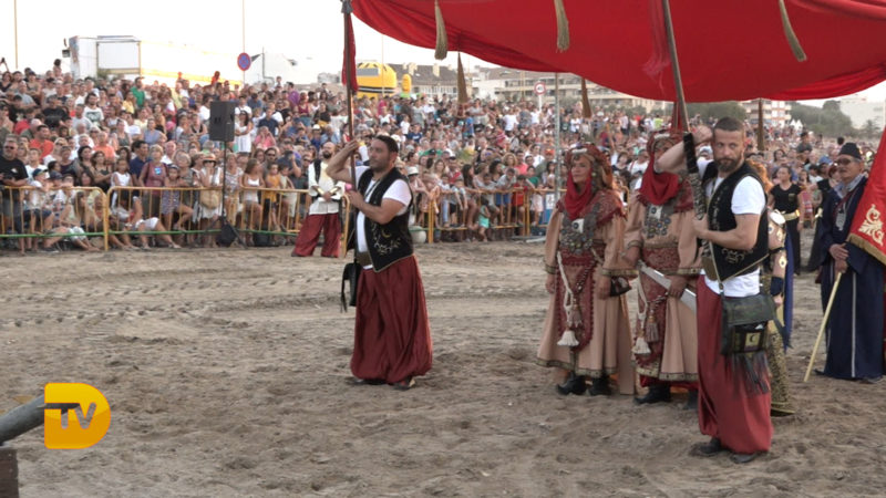 Como si de una película se tratase, ayer la playa de la Punta del Raset fue el escenario para la realización del desembarco Moro. Una gran ambientación, con una puesta de sol era el entorno perfecto para la realización de este acto. El buen hacer de la FEMMICC que lleva apostando hace años por engrandecer este evento, hizo una vez más que el lugar se quedase pequeño para su visualización. Este año como novedad se instaló una pantalla de leds para el seguimiento del acto, para no perderse detalle de todo lo que aconteció.