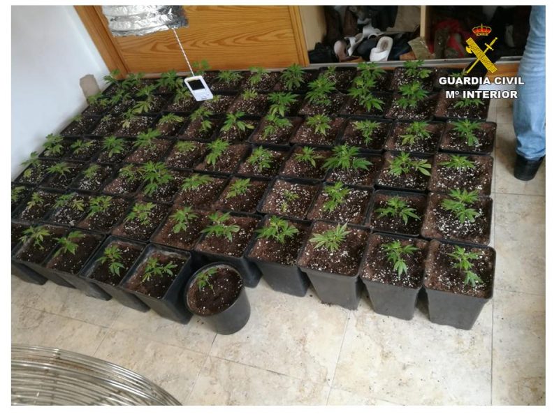 Tras realizar una entrada y registro en dicha vivienda, se ha intervenido 14 kgs de cogollos de marihuana, 44 plantas de tamaño medio en fase de crecimiento, 123 plantas pequeñas y esquejes, 24 lámparas de calor, 24 transformadores y 6 ventiladores.