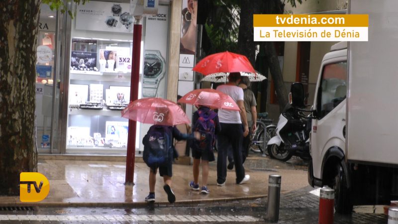 Después de la tormenta eléctrica de anoche llega la lluvia en Dénia. Este mediodia hacia la 13:30 ha cogido con intensidad las lluvias, paraguas, gente corriendo, hora de salida de colegios, momento corto pero intenso.