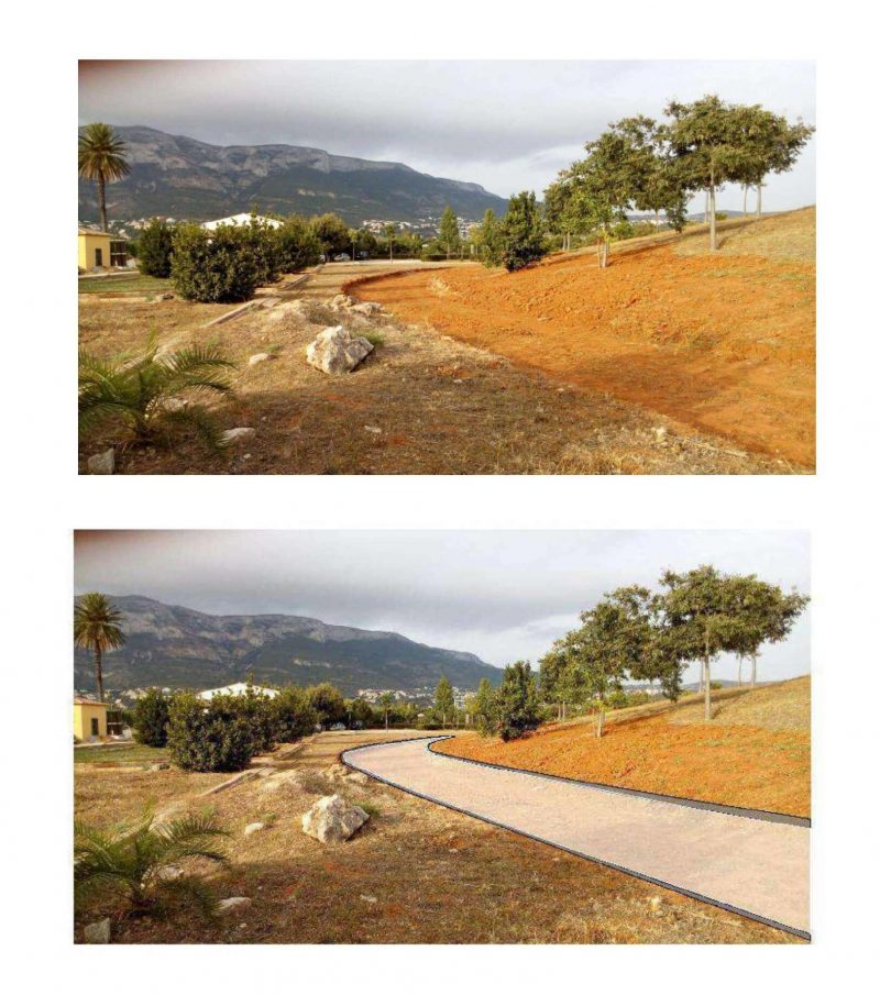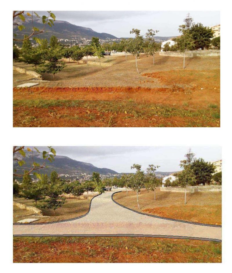 Por ello, se proyecta crear un camino interior de unos 363 metros lineales que comenzará en la zona izquierda de la entrada principal al parque, recorrerá gran parte del margen izquierdo del recinto, girará luego a la derecha para bordear las pequeñas colinas y regresará hasta el punto de partida.