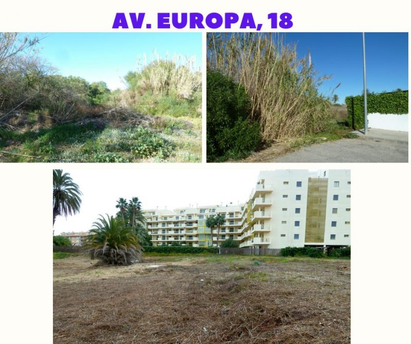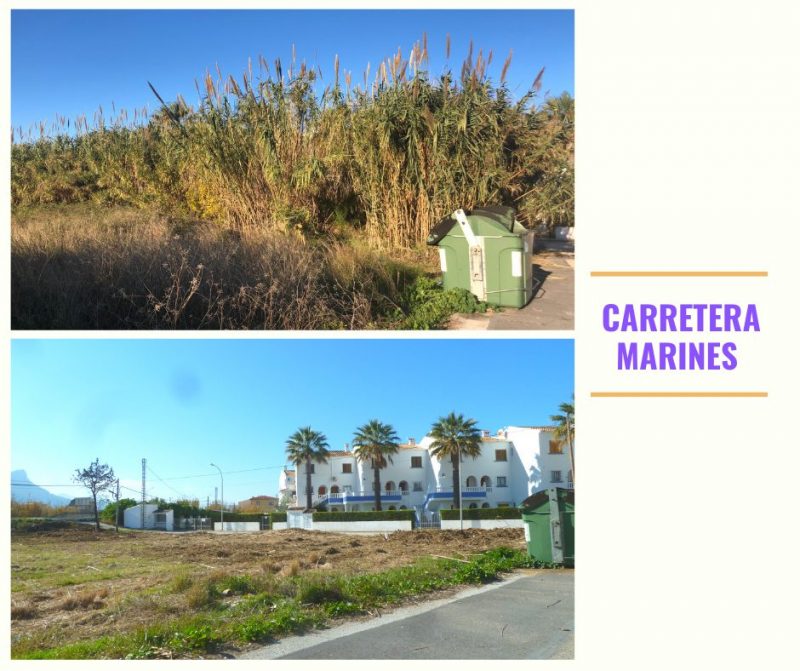 Los trabajos han consistido, principalmente, en el desbroce de la vegetación y la limpieza de los solares para evitar el riesgo de incendio y las condiciones de insalubridad. También se ha recortado el seto en la parcela de la carretera Dénia-Xàbia que impedía que los peatones pudieran andar por la acera y, además, dificultaba la visibilidad. En la calle Riu Altaret, donde existe un bloque de apartamentos deshabitados, la actuación ha consistido a tapar con tierra una piscina abandonada que constituía un foco de mosquitos.