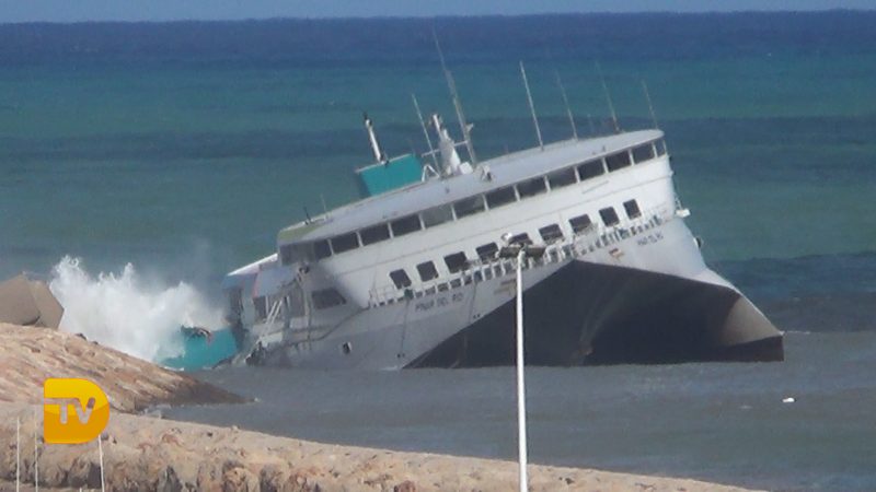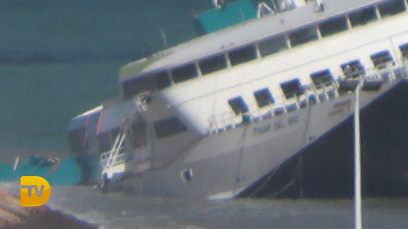 El barco de Baleària se escora y parece que se este hundiendo