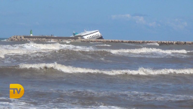 Tras pasar 25 días en la bocana, el barco sigue encallado y a la espera de posibles temporales muy próximos, esta noche alerta roja.