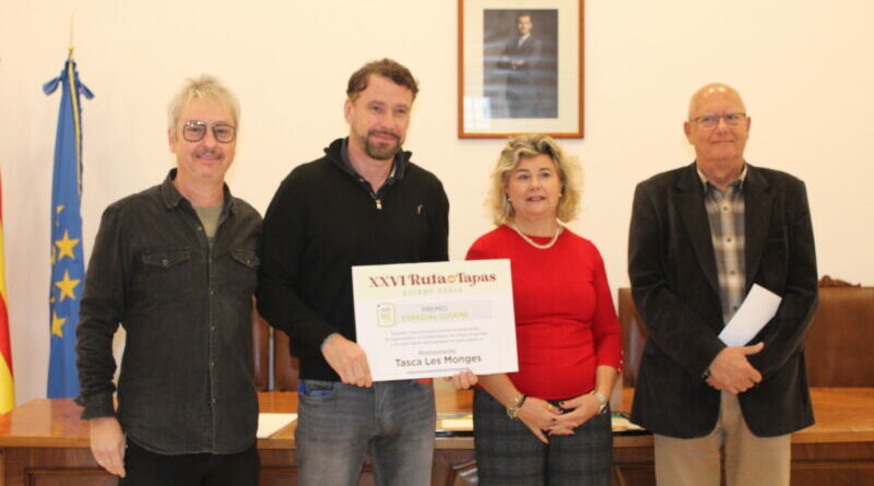 El premio a la mejor tapa elaborada con producto autóctono que entrega Turisme Dénia ha recaído en los “Xurros amb xocolate de la bahía”, de Casa Benjamín (c. Ramón y Cajal, 14). El alcalde y concejal de Turismo, Vicent Grimalt, ha entregado la placa conmemorativa del galardón.