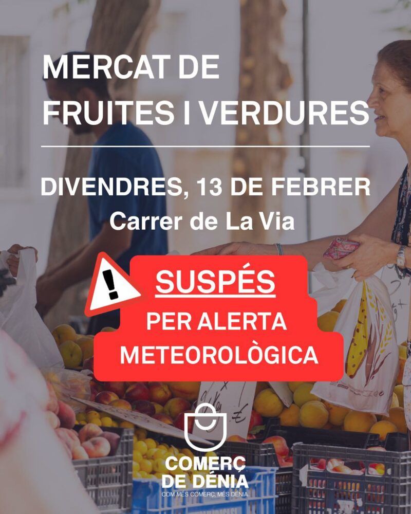 A causa de esta previsión, también se ha suspendido el mercado de frutas y verduras de la Calle La Vía de este viernes.