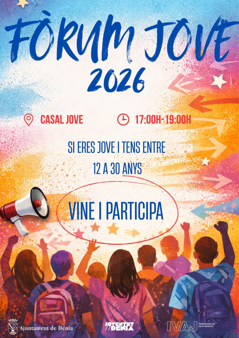 Juventud celebrará el próximo 26 de febrero, a las 17 horas, el Foro Joven en el Casal Jove de Dénia. Esta iniciativa nace con el objetivo de ofrecer un espacio de encuentro, reflexión y participación dirigido a la juventud de Dénia, donde se puedan abordar cuestiones de actualidad que afectan directamente su bienestar personal, académico y emocional.