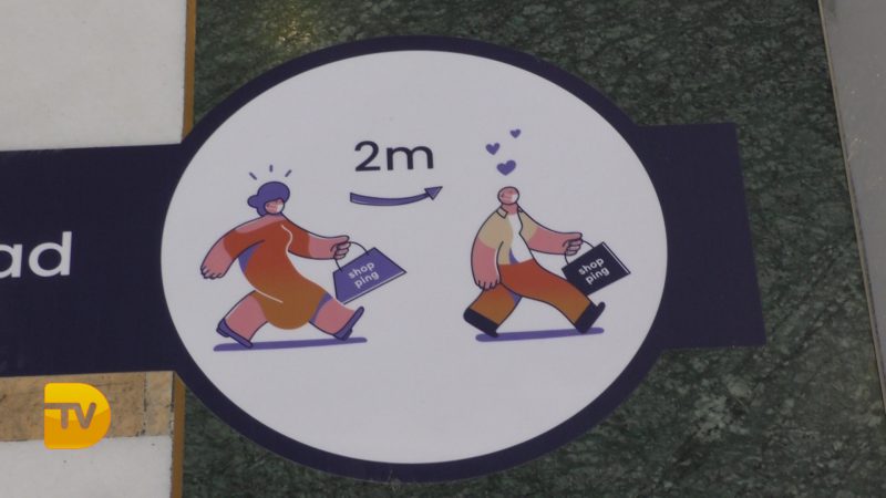 Otra medida es la incorporación de cartelería, vinilos indicativos que informan de la distancia de seguridad.
