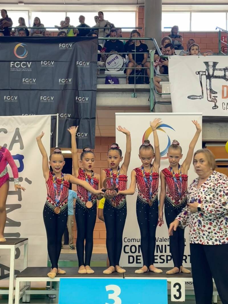 De este modo, el CG Les Marines consiguió tres títulos autonómicos de los seis posibles y estará en el Campeonato de España con 5 conjuntos, siendo así uno de los clubes con más representación en la fase nacional que se celebrará del 20 al 23 de noviembre en Castellón. Gracias al incansable trabajo del cuerpo técnico del club, Saray Pineda, Aroa Pineda, Mariona Hidalgo, Micaela Crimi, Yana Trukacheva y Monty Ciborro se han conseguido los objetivos marcados durante la temporada y conseguir sacar lo mejor de sus gimnastas.