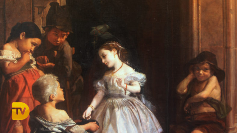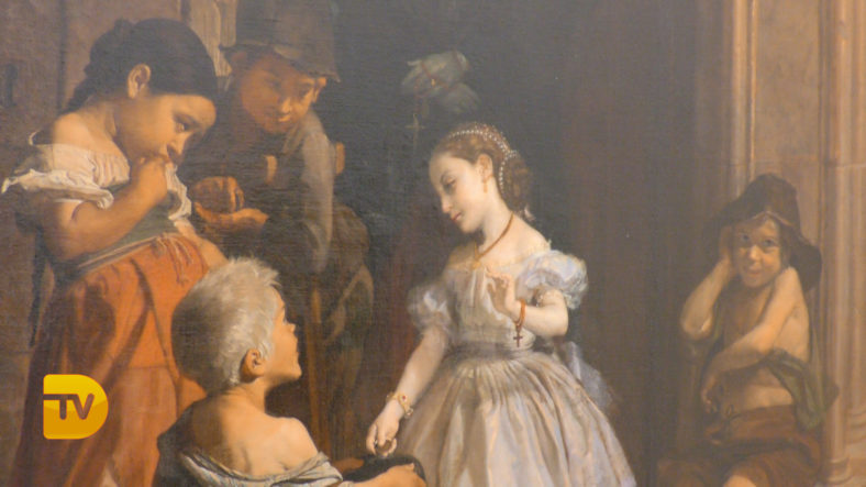 Según detalla el director del Museo Etnológico en la ponencia que ofrecerá esta tarde, a partir de las 18.30 horas, en la Sala de Plenos del Ajuntament de Dénia, titulada “La caridad, en 1867 y ahora. Domingo Llorens Cervera y el tributo / homenaje al pintor en plena Renaixença Valenciana”, la obra presenta un personaje central, una niña ricamente ataviada con un traje romántico de inspiración inglesa, muy de moda entre las clases pudientes de los tiempos de Isabel II, y luciendo joyas preciosas que denotan su estatus social.