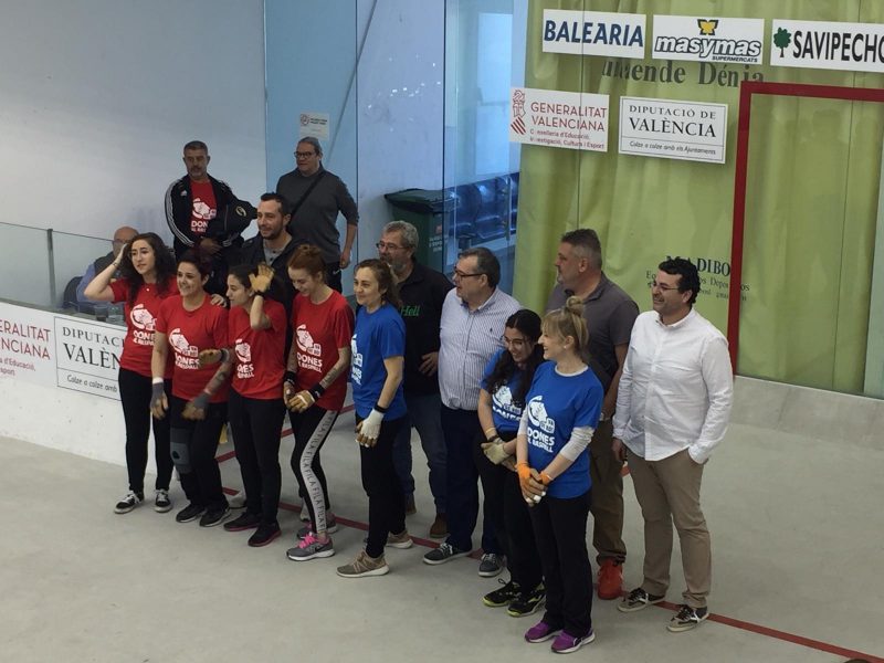 La partida de exhibición, incluida en la programación conmemorativa del 8M, enfrentó a Sabela, Ysabel y Patri, de rojo, y a Sonia, Vero y Cani, con camiseta azul, que debutaron en el Trinquet El Rovellet. En su primera partida de la temporada, el equipo (integrado actualmente por un total de 8 jugadoras) congregó a unas 150 personas de público.