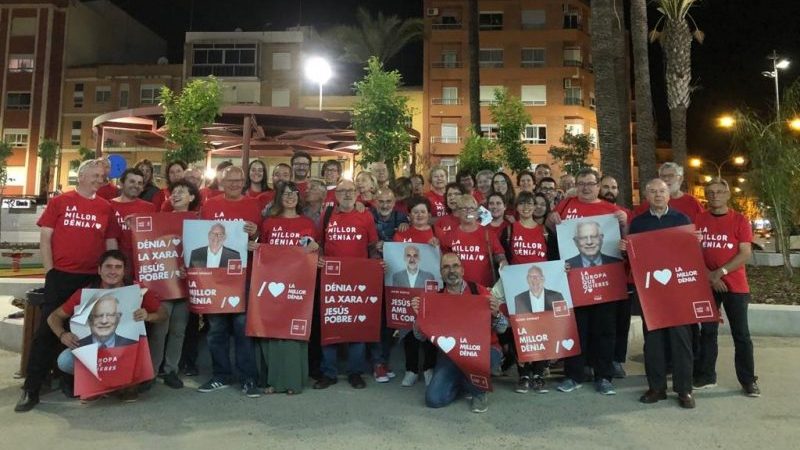 Els Socialistes de Dénia van iniciar la tradicional pegada de cartells en la plaça Arxiduc Carles, lloc emblemàtic exemple de la transformació urbana de la ciutat en els darrers quatre anys.