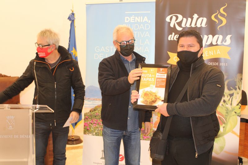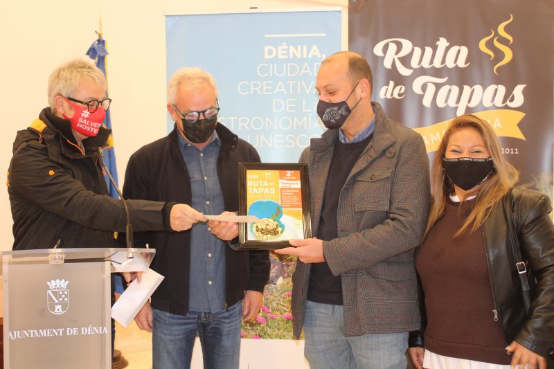 A continuación, se ha llevado a cabo el sorteo para repartir premios entre los ruteros que han rellenado y entregado su pasaporte de valoración con un mínimo de 15 tapas puntuadas. Los ganadores son: elegir a los ruteros ganadores de los diferentes premios dedicados al público participante. El resultado ha sido el siguiente: Leles Noguera (cena de tapeo para dos personas en el restaurante El Cantó, ganador del primer premio de la ruta); Daniel García (cena de tapeo para dos personas en el restaurante Tempura, ganador del segundo premio de la ruta); José Vicente Bolta (tapeo para dos personas en El baret de Robert, establecimiento ganador del premio de Turismo Dénia); Héctor López (cena de tapeo para dos personas en el restaurante Cata’s, ganador del premio Aehtma); Georg Himmel, ganador de la cesta de productos de la tierra de Melicatessen y Silvia Camarena Jorge, ganadora del premio patrocinado por Aehtma de una cena, noche de hotel y desayuno para dos personas en el hotel Los Ángeles de Dénia.