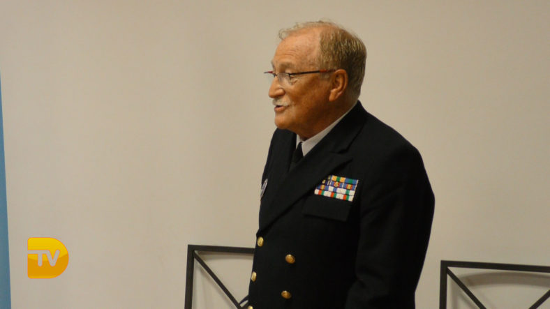 Durante la inauguración, el delegado de la Comunidad Valenciana, de la Real Asamblea Española de Capitanes de Yate, José Luis Aliaga, le ha entregado una metopa a Gabriel Martínez.