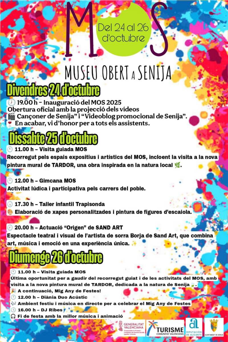 Coincidiendo con esta iniciativa, Senija se prepara para acoger del 24 al 26 de octubre el Museu Obert a Senija 2025, un evento que transforma el municipio en un gran museo al aire libre con actividades culturales, exposiciones, música y arte.
