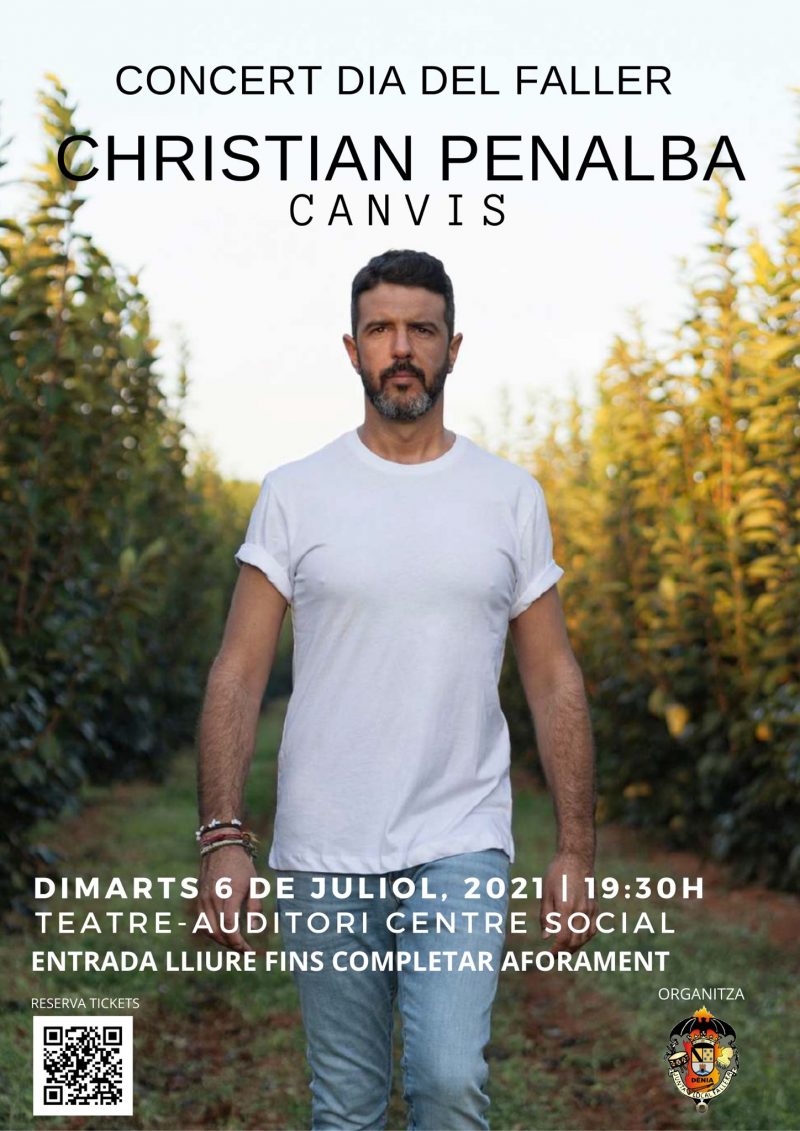 El dimarts dia 6 de juliol, quan tradicionalment es celebraria el Dia del Faller, tindrà lloc el concert de Christian Penalba a l’auditori del Centre Social. El cantautor de l’Alcúdia presentarà el seu nou disc “Canvis”, amb un repertori format per cant d’estil, jotes, fandangos, seguidilles, bolero i malaguenya, i recorre el País Valencià de nord a sud, però també entra en terres castellanes i murcianes. L’entrada es gratuïta però es necessària inscripció mitjançant l’enllaç https://docs.google.com/forms/d/e/1FAIpQLSdC3EkdfMG_74x-lK7gwy3udK_J8etLJaBnu-sj8apyPhK3Dw/viewform.