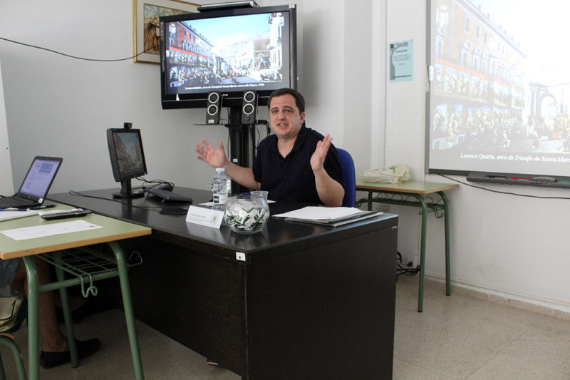 La ponencia de Álvaro Molina, versó sobre “La identidad de las urbs y la civitas en la imagen de la ciudad europea en el siglo XVIII” y aquí se habló la civilización y sociabilidad, analizando pinturas de Michel-Ange Houasse (Velada musical, ca. 1720), Charles Joseph Flipart (Fiesta en un Jardín, ca. 1750), Lorenzo Quirós (Ornato de la Puerta del Sol con motivo de la entrada de Carlos III, 1760, y Arco de Triunfo de Santa María, en la calle Mayor, 1760). Después, se comentó la identidad de la ciudad, urbs y civitas, mediante el arte de Louis Meunier, Antonio Joli (Vista del Real Palacio Nuevo de Madrid, ca 1755), Robert Sayer (vista general de Madrid desde el Puente de Segovia, 1752) y anónimos, entre otras obras de arte. Finalizó con la modernización de Madrid, de corte a capital liberal, mediante los cuadros de Isidro González Velázquez, Joseph Laborde, Dámaso López Ferreiro, entre otros.
