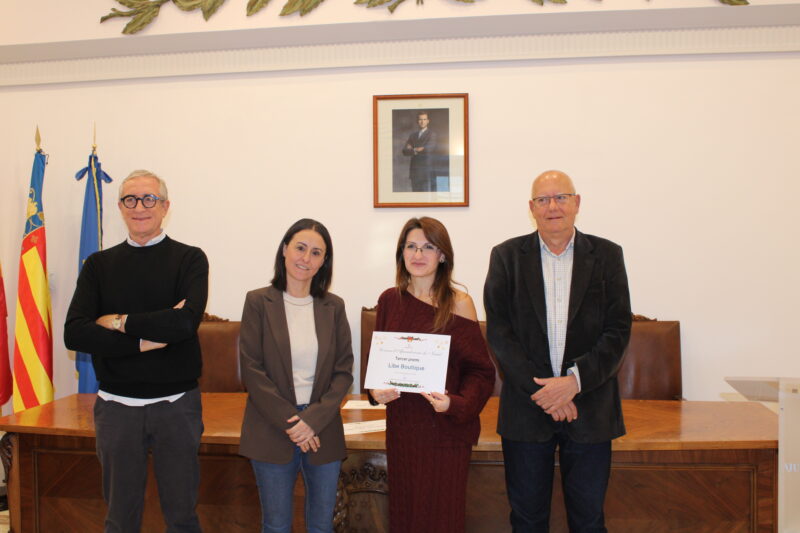 La Concejalía de Comercio ha entregado  los premios al concurso de escaparatismo navideño 2025 en la sala de plenos del Ajuntament de Dénia, en un acto presidido por el alcalde, Vicent Grimalt, y la concejala de Promoción Económica, María José García Roselló. En el concurso han participado veintinueve establecimientos de la ciudad.