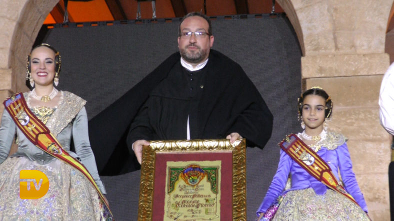 Manolo Catalán ha fet un Pregó faller ple de foc, llum i molt de color en la plaça de l’Ajuntament. A pesar de la pluja els fallers han acudit a aquesta cita, per escoltar l’inici de les falles de Dénia.