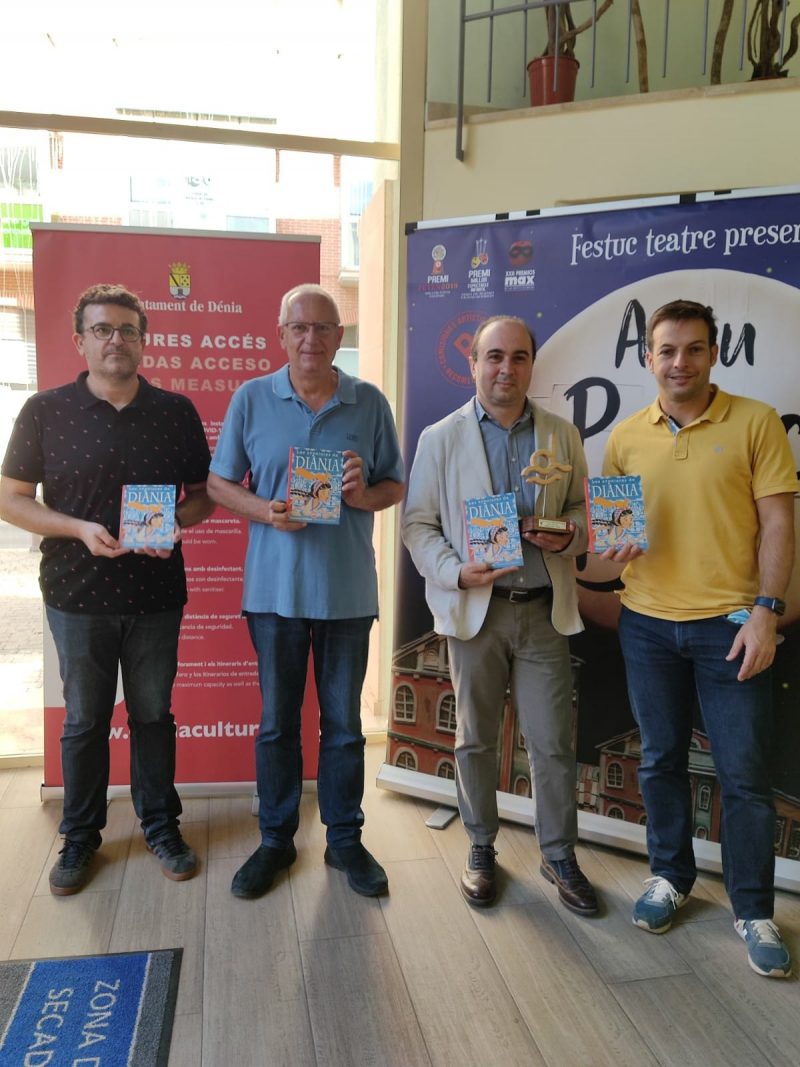 En la gala de entrega del premio, el alcalde, Vicent Grimalt, acompañado del concejal de Cultura, Raúl García de la Reina, y del editor de Andana Editorial, Ricard Peris, entregó al ganador el galardón del premio, realizado por los usuarios del TAPIS Dénia. En el acto se presentó también la edición de la obra ganadora, Les aventures de Diània, ilustrada por Javier Lacasta Llàcer