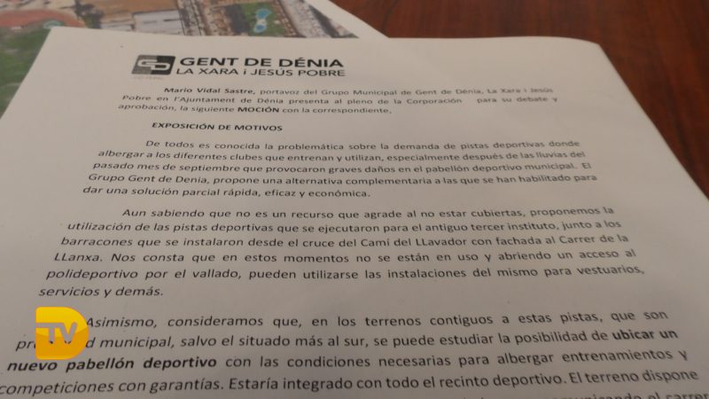 Gent de Dénia ha comparecido en rueda de prensa para anunciar que presentará una moción al pleno donde proponen ubicar un nuevo pabellón deportivo entre el cruce del Camí del Llavador con fachada en la calle de la Llanxa. Esto lo han propuesto tras explicar que el Ayuntamiento de Dénia podría utilizar las pistas deportivas que se ejecutaron para el antiguo tercer instituto como vestuarios, servicios y demás, abriendo el acceso por la valla del polideportivo. Por lo que el nuevo pabellón podría utilizarse para albergar entrenamiento y competiciones con garantías.