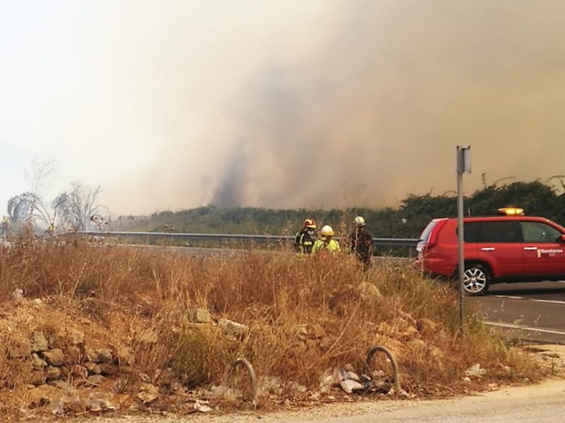 Sobre las 15:00 se ha declarado un incendio en término municipal de Pedreguer, junto a la carretera N-332 y en la partida Oquins.