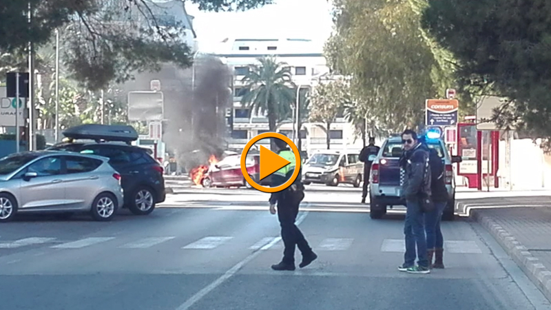 Pasadas las 15 horas del jueves, 14 de febrero, se ha dado la voz de alarma de un incendio en la urbanización Tropicana de Dénia. Se trataba de un coche, conducido por una mujer de mediana edad, que habría perdido líquidos, por lo que inmediatamente se ha prendido fuego. La mujer ha salido del vehículo por su propio pie al presenciar el incendio.
