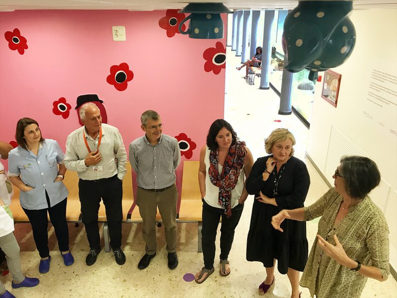 El Director Gerente del Departamento de Salud de Dénia –DSD-, Luis Carretero, acompañado por el Director Asistencial, Juan Cardona; el Director de Cuidados, Alfredo Moreno; la Directora de Recursos Humanos, Comunicación y RSC, Corpus Gómez; el Director y la Coordinadora de Atención Primaria, Antonio Barceló y Natalia Casado, respectivamente; los responsables de la zona básica de Dénia, Pablo Parrondo y Xaro Cabrerea; la Directora del Proyecto Arte, cuidArt, Alicia Ventura y la artista de la Marina Alta, Inma Mengual, han visitado esta semana la intervención mural de la zona de Pediatría en el Centro Sanitario Integrado I,CSI I, de Dénia, en La Pedrera.