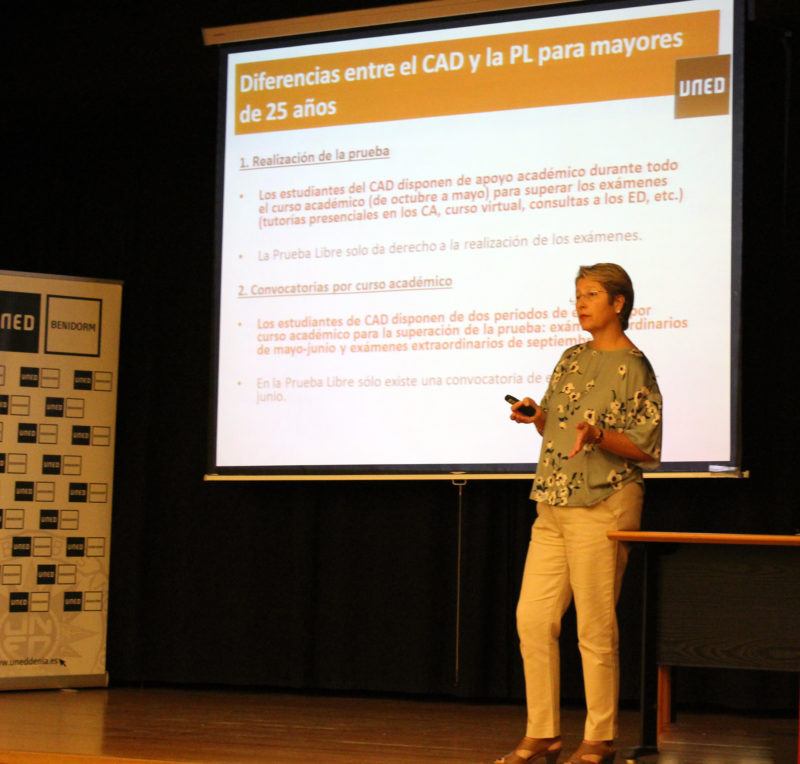 La siguiente charla la ha presentado Ángeles Pérez, delegada de estudiantes del Centro Asociado a la UNED, informando sobre la ayuda que ofrece al alumnado de nuevo ingreso y las ventajas de ser estudiante en la UNED de Dénia.