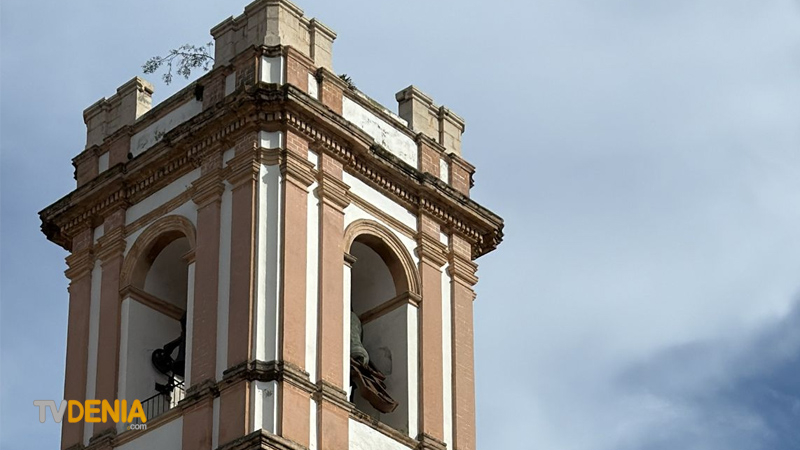 La Campana situada en lo alto de la Iglesia de La Asunción ha sufrido una rotura. Esta mediodía estaban montando el escenario donde mañana por la tarde tendrá lugar la Cridà i Prego de las Fallas de Dénia 2026.