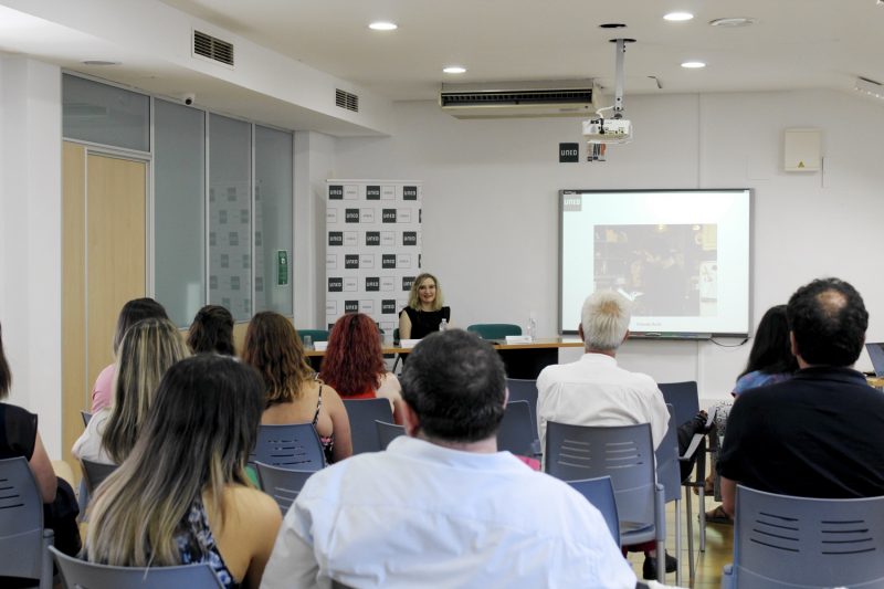 Posteriormente a la conferencia de Ana López Navajas, tuvo lugar la exposición titulada «ODS. Objetivos de desarrollo sostenible en la Universidad» por María Esther Souto Galván, Catedrática de Derecho Eclesiástico, Vicerrectora 1ª de Política Institucional y Relaciones Internacionales de la UNED.