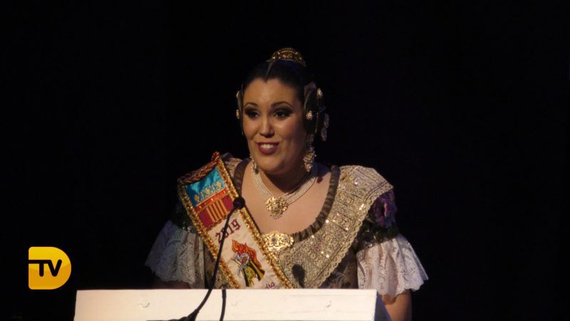 La Falla Campaments mostra la seua identitat per presentar a Sandra Moll com a Fallera Major 2019. L’acte ha estat presentat per Soralla Moreno.